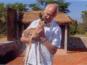 It is said in Sai Baba’s ashram in Puttaparthi, India, that Sai Baba prophesied that one day a deer calf would be found in a flock of sheep, and that this calf would be divine. The calf was recently discovered in a flock of sheep. While at Ananda Forest, a Sai Baba project near Puttaparthi, Dutch visitor H.J. Pieters Graafland was photographed holding the calf. According to Benjamin Creme’s Master, the deer calf is a divine ‘Cosmic Companion’ (a kind of animal Avatar), come as a companion to Sai Baba in his later years. From the January/February 2005 issue of Share International. Sai Baba birthday miracle